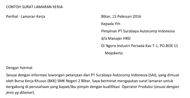 Networking, education, multimedia, digital printing lihat semua pos dari irfai . Contoh surat lamaran kerja selengkapnya download disini. Apakah sobat pintar sudah bisa membuat surat lamaran pekerjaan? Menulis surat lamaran kerja yang baik dan benar dapat memberi kesan bagi perusahaan sehingga meningkatkan potensi pelamar. Surat lamaran kerja, merupakan dokumen yang sudah pasti dan tentu harus dilampirkan ketika anda melamar pekerjaan.